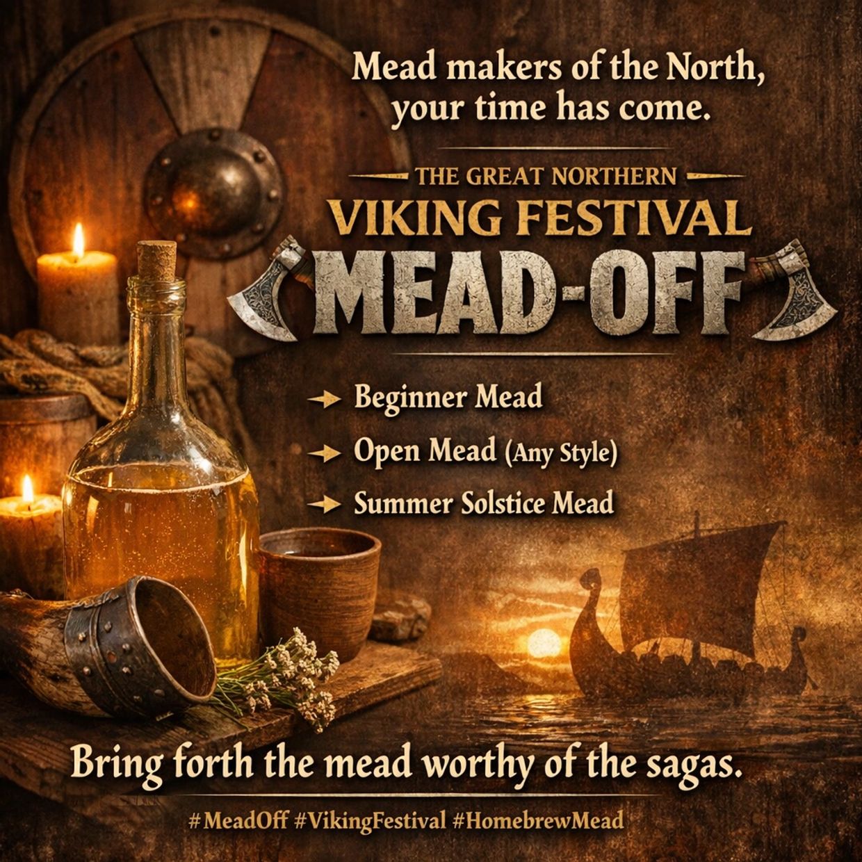 Home mead makers are invited to bring their finest brews to the Great Northern Viking Festival Mead-Off, a homebrew mead competition held during the Great Northern Viking Festival in Minnesota.
